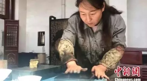 “先用那個頭發(fā)絲打磨,把它打磨的平平整整的。然后再抹上麻油,撒上磚灰面,順著一個方向推。推到那個手掌發(fā)熱,就憑那個感覺,而且推出來你看光亮如鏡,發(fā)的就是那個啞光而且有一點紋路”。平遙推光漆器傳承人梁改平如是說。